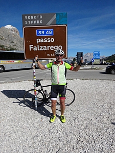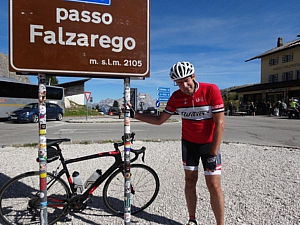 Auf der Terrasse vom Restaurant „Belvedere Grill Bar“ legten wir eine Pause ein. Es gab Speckknödelsuppe. Auf den nächsten zwei Kilometer verloren wir nochmals 200 Höhenmeter, bevor es in den Anstieg zum Passo Falzarego geht. Mit 6,5% Steigung im Durchschnitt ist die Anfahrt von Süden auf der SR203 und der SR48 eine Bergauf-Bolz-Strecke. Es ist einfach genial, wenn der Radltacho so um die 15km/h berauf anzeigt. Das machte mal wieder richtig Laune, nach den Quälereien vorangegangener Auffahrten wie am Hirschbichlpass oder Kerschbaumer Sattel.