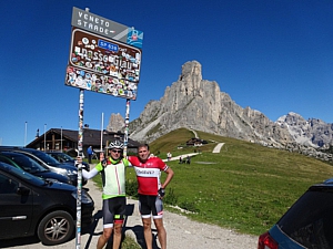 Am Falzarego gönnten wir uns eine Cola und beobachteten das bunte Treiben. Hier kommen Straßen aus drei Richtungen zusammen und manche haben dann doch einige Orientierungsschwierigkeiten.
